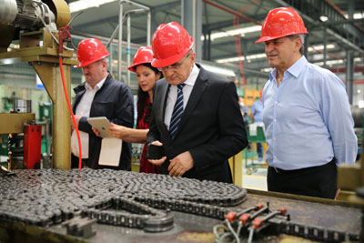 10月14日,與會人員共赴江蘇興化,參觀了興化東華齒輪公司和興化鏈條生產(chǎn)基地。大家在參觀中,不時舉起相機,拍攝精良的設(shè)備和生產(chǎn)現(xiàn)場;不時駐足留戀,細究產(chǎn)品的全制造過程,連對新購的156畝土地也頻頻舉起相機,記錄著一切。期間,大家紛紛贊嘆東華的穩(wěn)健發(fā)展,特別是海外公司同事表示,親眼目睹興化鏈條生產(chǎn)基地后,對董事長宣碧華專注制造業(yè),不斷新購?fù)恋亟◤S房,新購設(shè)備擴大生產(chǎn),不斷做精做大做強企業(yè)的決心和實際行動表示敬佩,對把東華早日打造為世界一流的鏈傳動企業(yè)充滿信心。