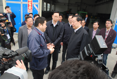 3月31日,江蘇省委書記羅志軍在泰州市委書記藍紹敏、泰州市市長陸志鵬、興化市委書記陸曉聲、興化市副市長李斌等省市領導的陪同下,到興化東華齒輪有限公司調研。興化東華公司總經理蔣亞龍等領導陪同調研。