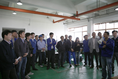 430日,集團公司副總經理袁立華、各事業部部長、副部長、日本專家早川先生、TPS專員及相關人員走進各事業部生產車間,現場聽取各事業部第六期TPS成果匯報,并現場檢驗、交流、學習各事業部在實施TPS上好的做法、成功經驗、取得的成效和存在的不足及改進措施。