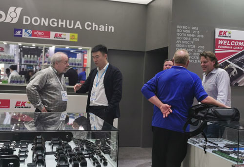 東華鏈條展出系列最新產品,隆重亮相展會。展廳占地100多平方米,位于傳動件展廳顯著位置,設計美觀、大氣。今年重點展出了傳動類、輸送類、農機類、高端裝備類等最新鏈條產品。這些精良的產品代表了當前公司高端的制造水平,吸引了無數國內外新老客戶及參觀者的眼光。