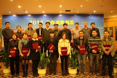 最后,內(nèi)銷公司總經(jīng)理戴迪漢和錢文孝宣讀了優(yōu)秀經(jīng)銷商名單。宣董事長向優(yōu)秀經(jīng)銷商頒發(fā)了榮譽證書并合影留戀。