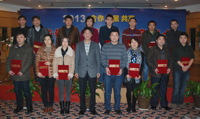 最后,內銷公司總經理戴迪漢分別宣讀了東華集團和盾牌公司2012年優秀經銷商名單,宣碧華董事長向優秀經銷商頒發了榮譽證書并合影留戀。