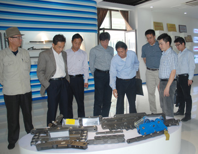 923,浙江省科技咨詢中心副主任陳偉、杭州市科技咨詢中心、杭州市院士專家服務中心主任吳挺等省市區(qū)科學技術協會領導陪同寧夏回族自治區(qū)科學技術協會副主席王冰等領導到東華集團就院士工作建設情況及取得的成效進行調研。圖為副總經理袁立華、技術中心顧問陳金賢陪同陳主任一行參觀樣品。