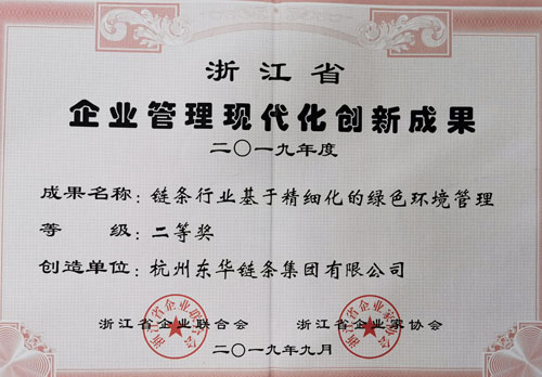 日前,杭州市企業(yè)聯(lián)合會(huì)召開(kāi)換屆選舉大會(huì),會(huì)上表彰獎(jiǎng)勵(lì)了2019年度杭州市企業(yè)管理現(xiàn)代化創(chuàng)新成果獎(jiǎng),公司由管理部推薦的“鏈條行業(yè)基于精細(xì)化的綠色環(huán)境管理”榮獲杭州市企業(yè)管理現(xiàn)代化創(chuàng)新成果三等獎(jiǎng)。該成果也被浙江省企業(yè)聯(lián)合會(huì)授予浙江省2019年企業(yè)管理現(xiàn)代化創(chuàng)新成果二等獎(jiǎng)稱號(hào)。