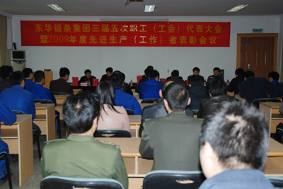 3月1日,東華集團(tuán)召開三屆五次職工(工會)代表大會暨2009年度先進(jìn)生產(chǎn)(工作)者表彰會議。總經(jīng)理張世強(qiáng);副總經(jīng)理廖杭州、袁立華;財務(wù)總監(jiān)趙鵬飛;董事宣志榮;工會主席魯小林等高層、優(yōu)秀中層、崗位標(biāo)兵、先進(jìn)(生產(chǎn))工作者代表等80多人參加會議。