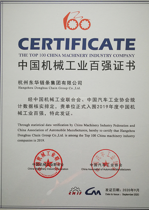 9月16日,中國機械工業聯合會、中國汽車工業協會在重慶市隆重召開第十六屆中國機械工業百強企業、汽車工業整車二十強、零部件三十強企業信息發布會并對當前行業經濟運行形勢進行了分析。東華鏈條集團再次榮登中國機械工業百強榜,排名第51位,比上一年度上升8位,這是東華鏈條集團連續五年躋身中國機械工業百強榜,也是中國鏈傳動行業唯一上榜企業。