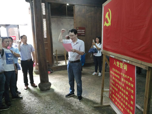 在被服廠舊址黨團(tuán)宣誓室,全體黨員在黨委書記魯小林的帶領(lǐng)下進(jìn)行入黨宣誓,重溫入黨誓詞,激發(fā)前行動力。