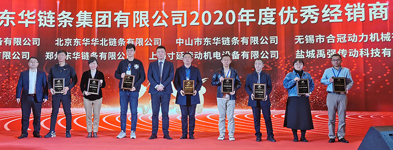 為感謝陪伴東華一路成長,一起拼搏的合作伙伴們,會議隆重表彰了東華15家優秀經銷商、5家最佳新秀獎;盾牌公司10家優秀經銷商,董事長宣成向獲獎單位頒發獎牌并合影留念。
