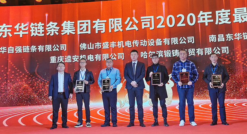 優秀經銷商代表發言:鹽城禹強傳動科技有限公司總經理裴作江發言;泉州自強鏈條有限公司總經理李學前發言。