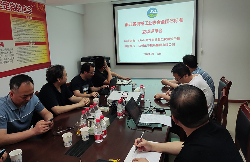 6月16日,浙江省機械工業聯合會召開了由東華擬牽頭制定的浙機聯團體標準《A960H重載型農用滾子鏈》的立項評審會。評審會由浙機聯常務副會長趙群主持,評審組由浙江大學教授余忠華、省機電產品質檢所正高級工程師何朝暉等5位專家組成。東華兩位技術標準專家代表工作組參加會議。
