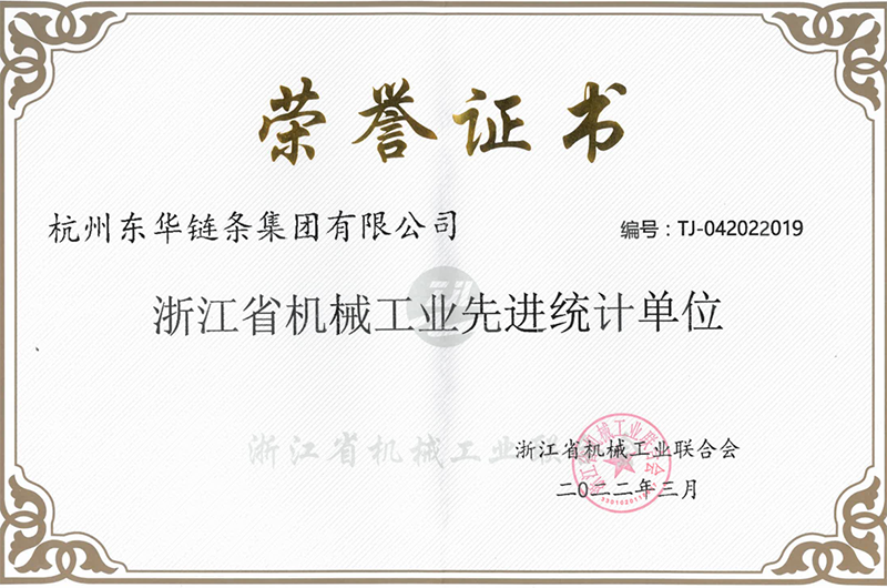 日前,東華鏈條集團被浙江省機械工業聯合會授予“浙江省機械工業先進統計單位”稱號,以表彰我單位在報送企業信息方面的快捷、準確性所作的努力。