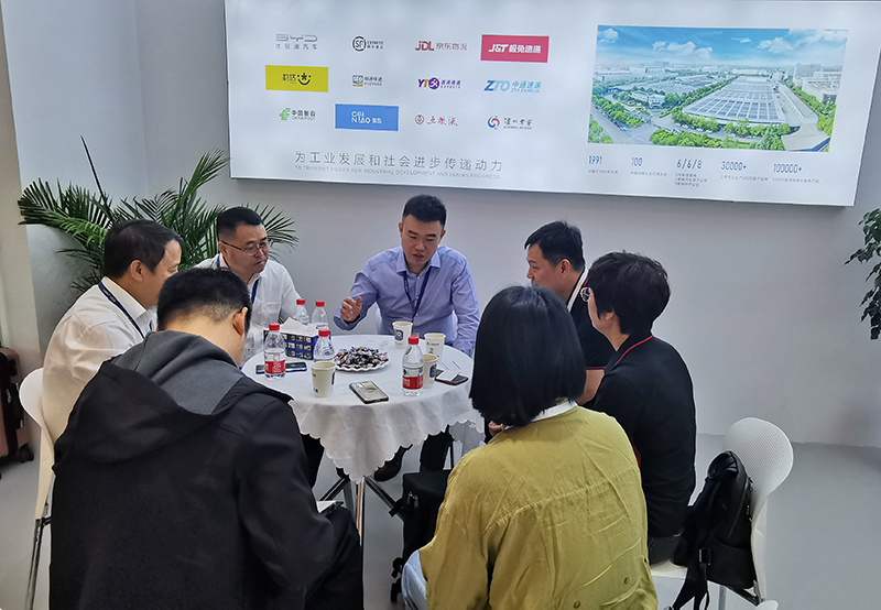 展臺前,參觀交流的客戶、觀眾絡繹不絕,國內外市場部業務人員向大家介紹公司發展情況、制造技術、產品及應用領域、質量保障能力等,忙的不可開交。尤其是展會上最新一臺由傳動鏈、輸送鏈等多種鏈條組成的物流系統化設備,吸引了大量客戶和觀眾參觀、拍照、攝像,成為展會的一大亮點。