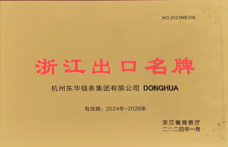 東華鏈條“DONGHUA”品牌通過浙江出口名牌復評