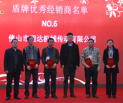 會議期間,內銷公司總經理戴迪漢宣布了東華2016年17名優秀經銷商名單;盾牌公司總經理錢文孝宣布了盾牌2016年6名優秀經銷商名單。副董事長宣成向優秀經銷商頒發了獎牌并合影留戀。