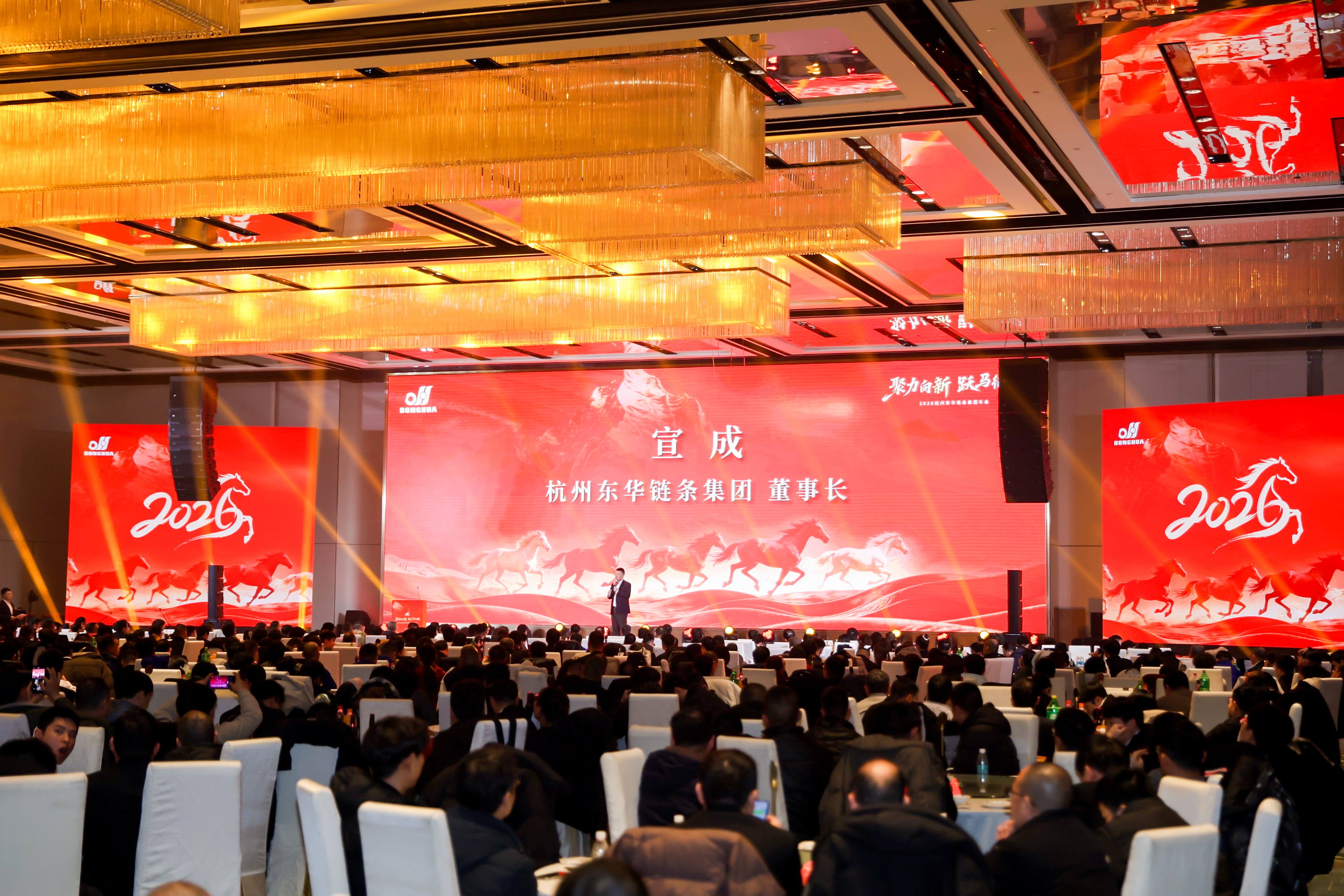 2月9日,東華鏈條集團2026迎新年會暨2025年度優秀員工與團隊表彰大會在杭州臨平溫德姆酒店隆重舉行。集團創始人、名譽董事長宣碧華,董事長宣成,中高管團隊,總部各級管理人員、高級技師、技師,受表彰的優秀員工及先進部門代表等800余人歡聚一堂,共同回顧奮斗歷程,擘畫發展新篇。