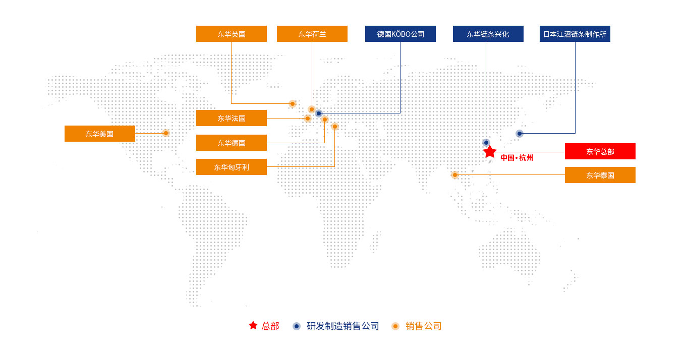 東華鏈條集團是一家具有全球協同研發能力的跨國制造企業,在全球擁有多家工廠及倉儲銷售中心,為國內和國際市場服務。