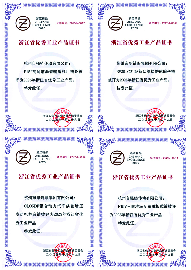 在此次評選中,東華鏈條憑借在中國及世界鏈傳動行業制造領域的深厚積淀、持續的研發投入以及突出的創新成果,成功入選浙江省制造業民營企業200強、浙江省民營企業研發投入200家、浙江省民營企業發明專利200家三項重要榜單,彰顯了集團在高質量發展道路上的硬核實力與領先地位。