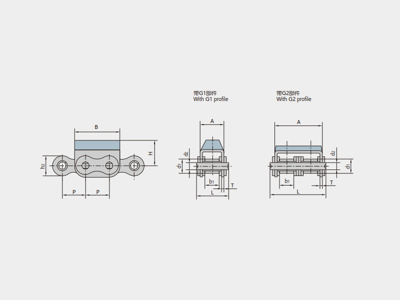 ● 橡膠附板鏈是在標準短節距精密滾子鏈作為基鏈的基礎上加裝橡膠頂板的鏈條,基鏈符合ISO、ASME/ANSI、DIN、JIS等標準;