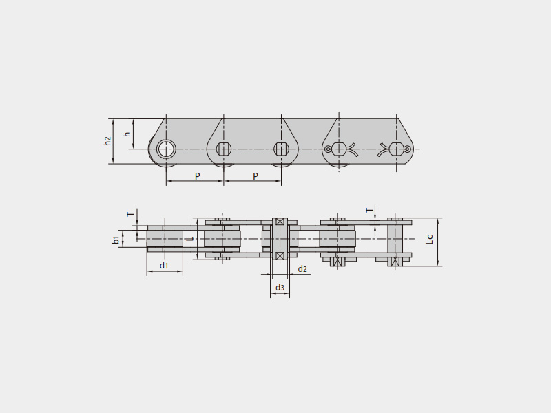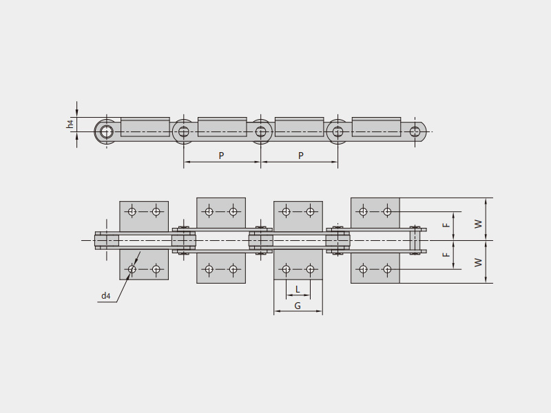● FV系列輸送鏈是指鏈條節(jié)距為公制整數(shù)(節(jié)距范圍40mm~500mm的多種節(jié)距)的滾子鏈或套筒鏈,滾子有多種結(jié)構(gòu)形式,根據(jù)使用工況配置各種附件。