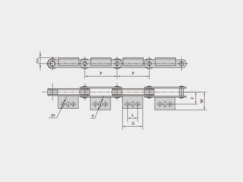 ● 英制(Z系列)輸送鏈類似于米制(M系列)輸送鏈,是指鏈條節(jié)距值為英制尺寸(1.50in~12.0in)的滾子鏈或套筒鏈,滾子有多種結(jié)構(gòu)形式,根據(jù)使用工況配置各種附件。