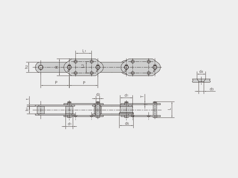 2.NSE系列斗式提升機用鏈:用于水泥熟料、水泥成品的提升作業(yè),帶G4附板等。