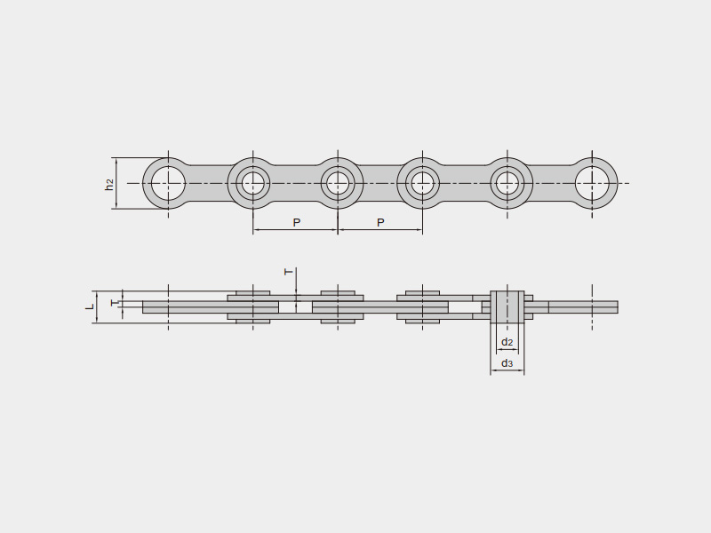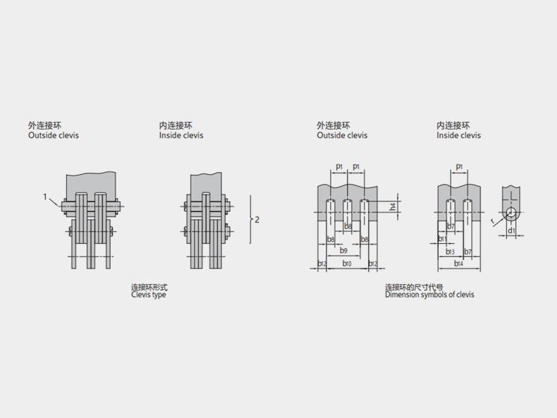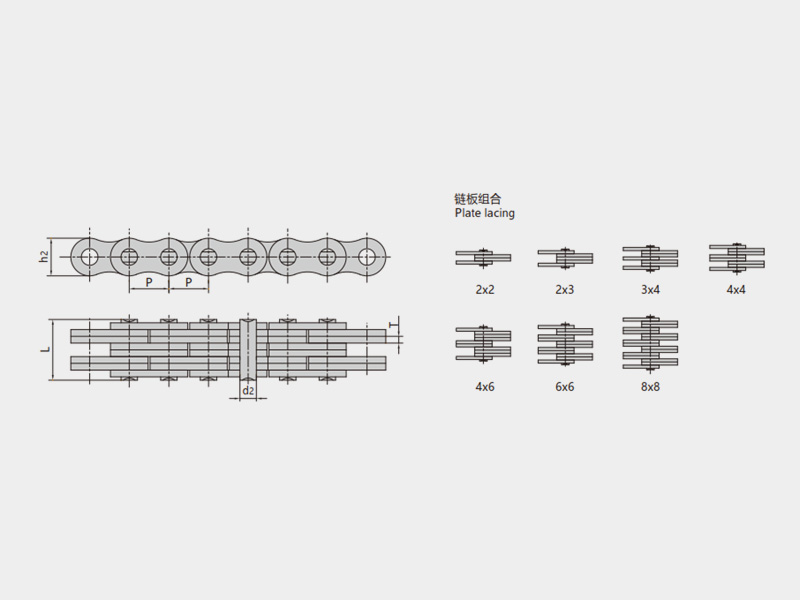● 板式鏈符合ISO 4347、ASME B29.8M、JIS B 1804等標(biāo)準(zhǔn),主要有LH(BL)系列、LL系列和AL系列,以及由標(biāo)準(zhǔn)系列衍生的其它鏈號的板式鏈,節(jié)距范圍5.94mm~76.2mm,可根據(jù)主機(jī)用戶的特殊要求進(jìn)行非標(biāo)定制,并可配套供應(yīng)各種類型連接環(huán)(端接頭)、特殊連接件等附件;